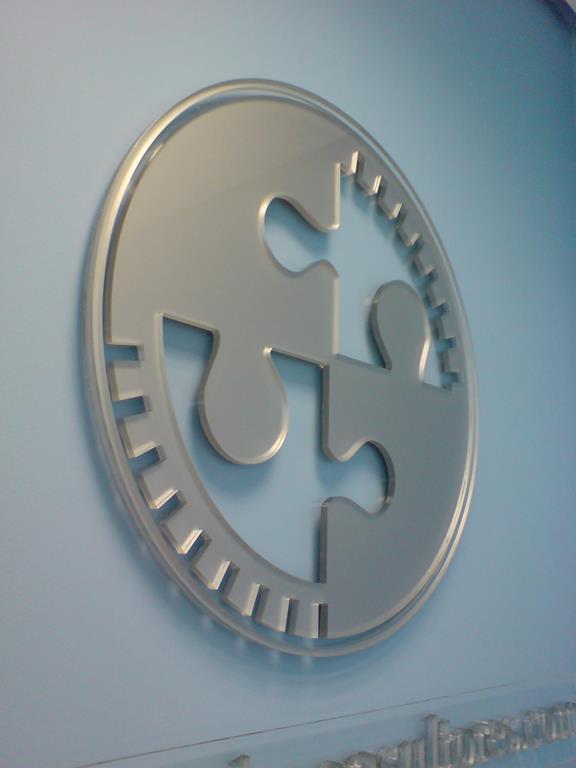 Se puede hacer en metacrilato trasparente y luego darle el color por la parte trasera o hacerlo en propia composición recortando la pieza de la plancha original.